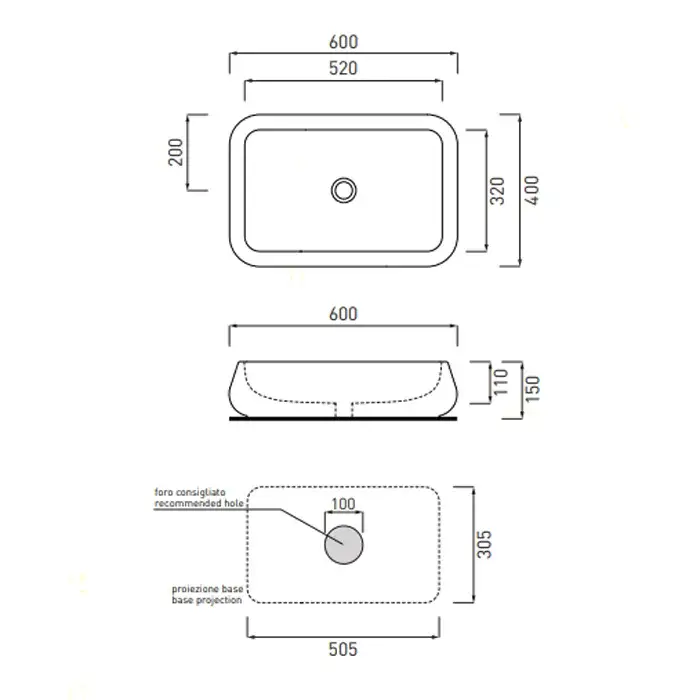 Cielo Shui Раковина 60х40хh15 см, накладная, цвет: глянцевый белый SHLAA60