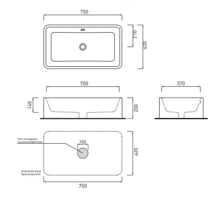Cielo Shui Раковина 66х48хh15 см, подвесная/накладная, с 1 отв, цвет: глянцевый белый SHLS66