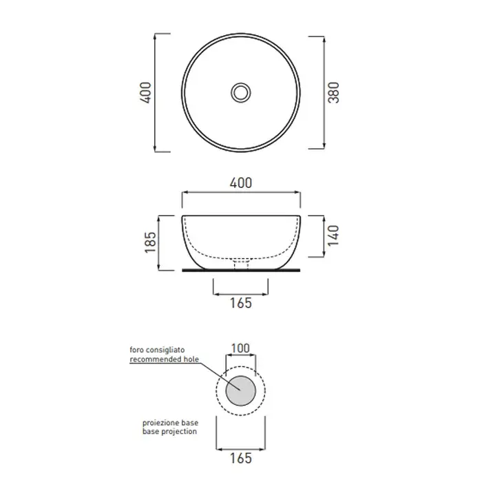 Cielo Shui Раковина накладная 40х18 см, круглая, без перелива, цвет: белый SHBA40