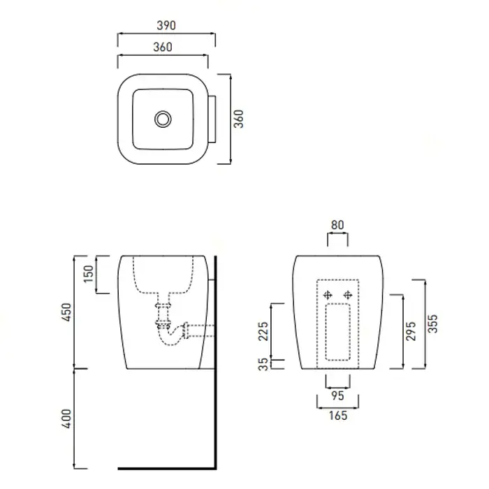 Cielo Shui Раковина с полупьедесталом 36х39хh45 см, подвесная, цвет: глянцевый белый SHLAS