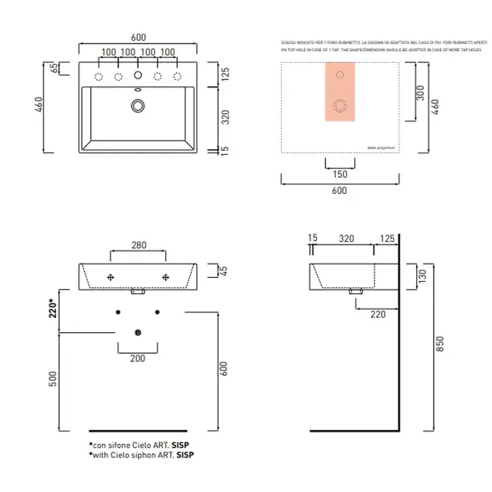 Cielo Smile Раковина подвесная 60х46хh13 см, 1 отв, цвет: глянцевый белый SMLAA60