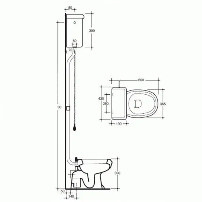 Cielo Windsor Сливной механизм с цепочкой для высокого бачка, хром 506XC