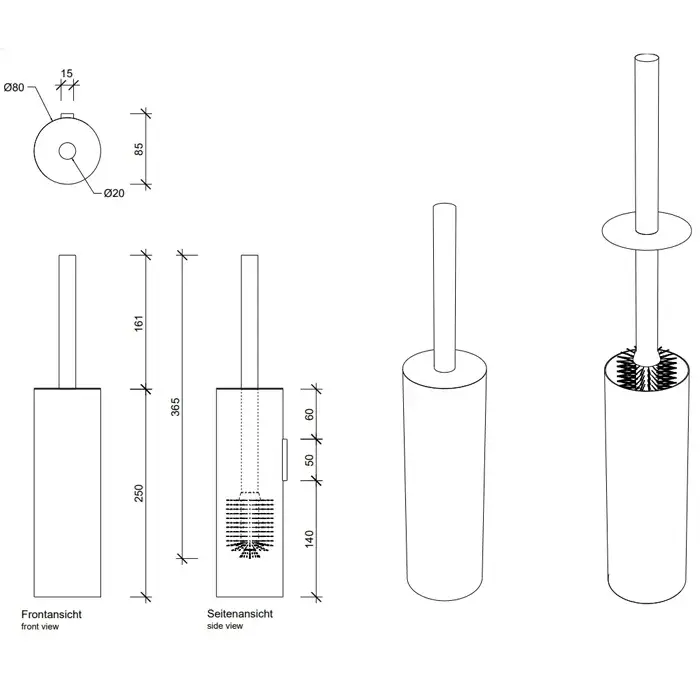 Decor Walther Bar WBG Ершик для унитаза подвесной, латунная колба, цвет: матовая нержавеющая сталь 0856976