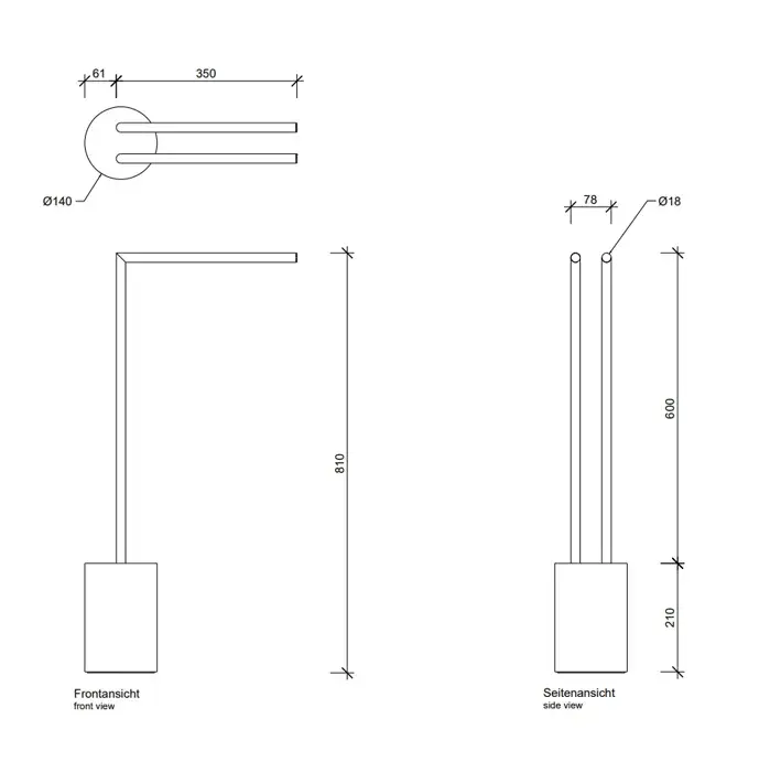 Decor Walther Black Stone HT2 Полотенцедержатель напольный 35 см, цвет: черный матовый/матовая сталь 0971765
