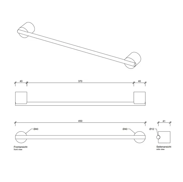 Decor Walther Black Stone HTE45 Полотенцедержатель подвесной 45 см, цвет: черный матовый/сталь матов 0975165
