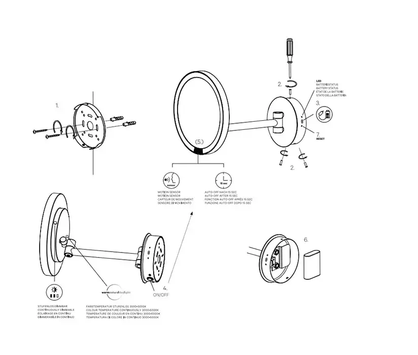 Decor Walther Косметическое зеркало, настольное, 5 кратное увеличение, с подсветкой, цвет: белый 0125450