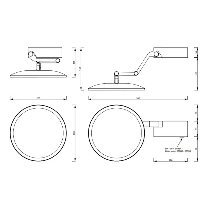 Decor Walther Vision R Косметическое зеркало 20 см, дополнительное, цвет Nero opaco 0123160