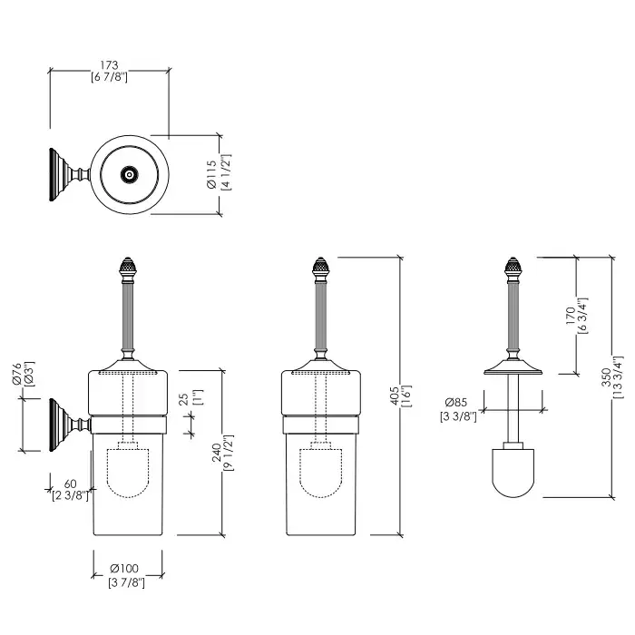 Devon&Devon Black Diamond Ершик для унитаза подвесной с керамической колбой, цвет: бронза BLKD520BRNE