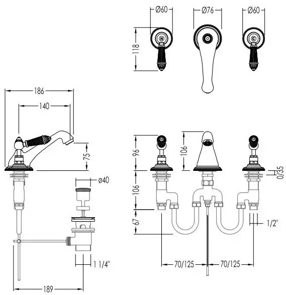 Devon&Devon Black Diamond Смеситель для раковины на 3 отв., цвет: хром BLD76CR
