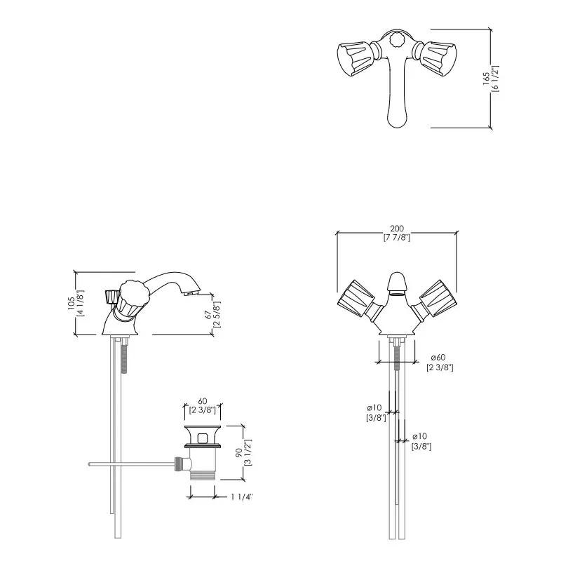 Devon&Devon Black Morris Смеситель для биде на 3 отв. ручки черные. цвет хром DDMRBL312CR