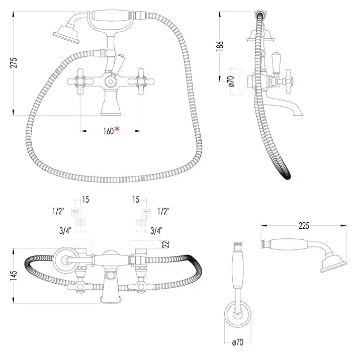 Devon&Devon City Смеситель для ванны настенный, в комплекте с лейкой и шлангом, цвет хром UTCI133CR 1UTCI133CR