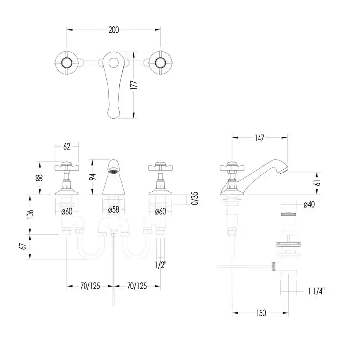 Devon&Devon Coventry Смеситель для раковины на 3 отв., цвет: хром MARF26CR