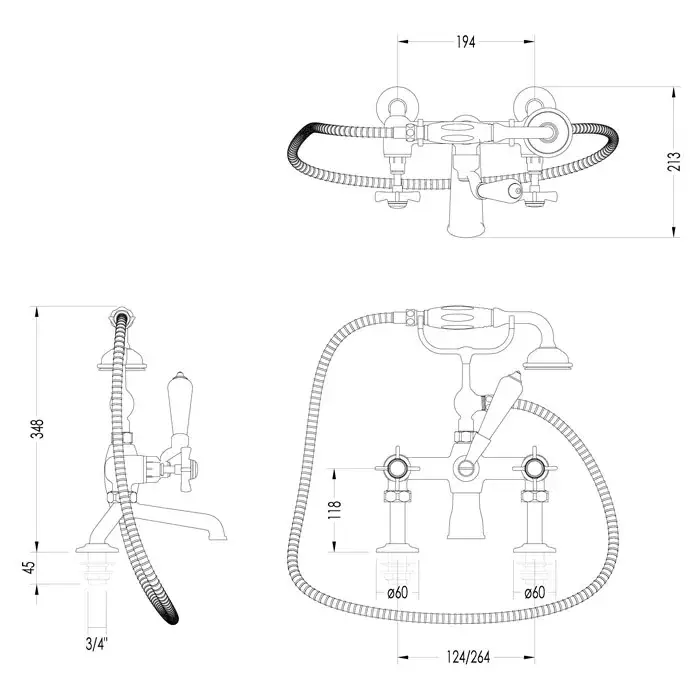Душевой шланг, Душевая лейка, Держатель для душевой лейки, Дивертор