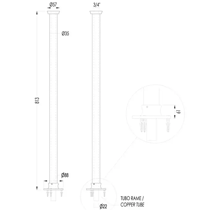 Milldue Edition Dandy Шкаф-пенал 36х23х180см., 1 дверца, ручка матовое розовое золото, подвесной, цвет: глянцевый Grafite