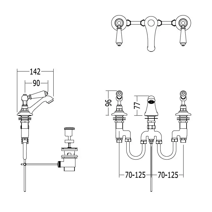Devon&Devon Dandy Смеситель для биде на 3 отв., c ручками белыми, цвет хром MARF45CR