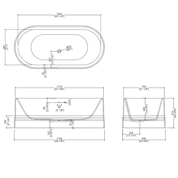 Devon&Devon Diva Ванна 171x87xh70,5cм, свободностоящая, материал: White teс, цвет белый 1NADIVA