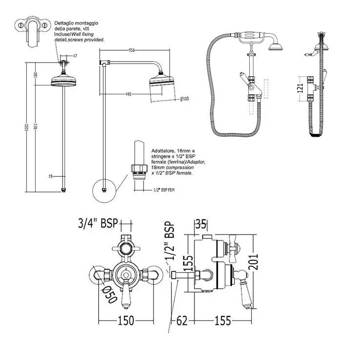 Devon&Devon Doccia Ручной душ с переключателем и держателем, цвет хром MARK618CRBD