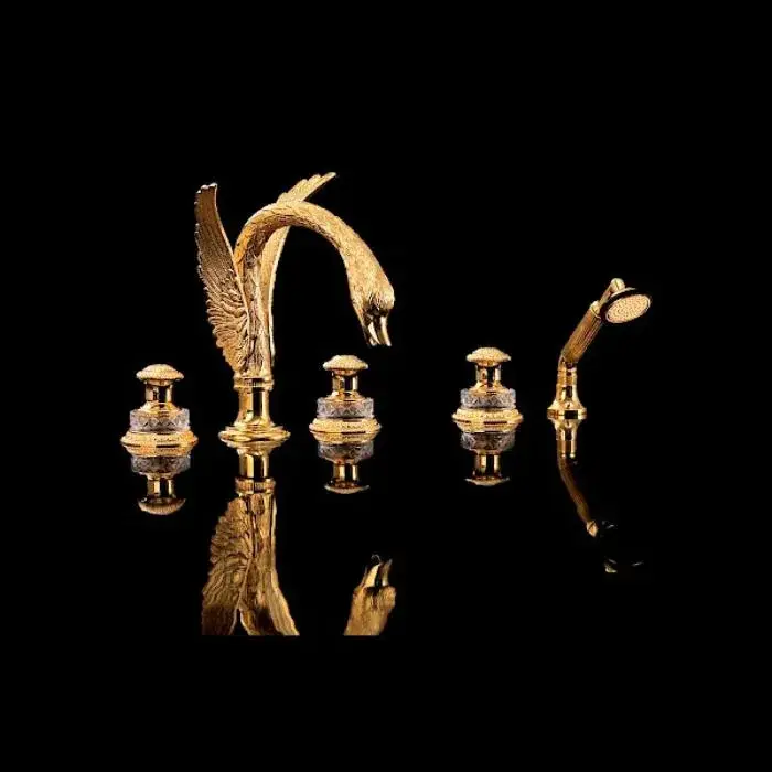 Devon&Devon Excelsior Swan Смеситель для раковины на 3 отв., цвет: золото 24к. EXC-SW101GK