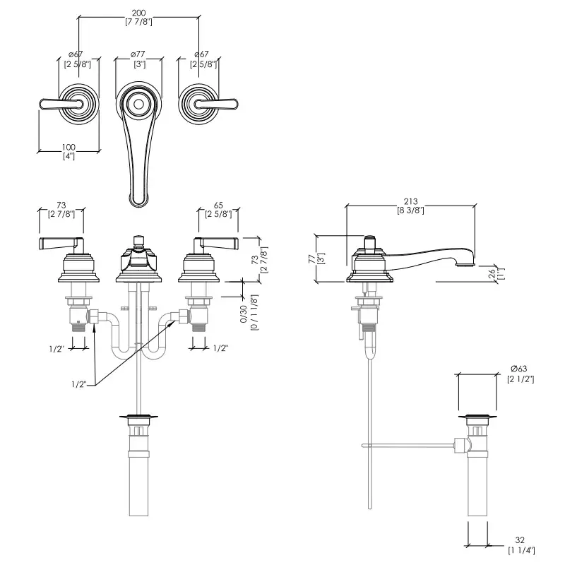 Devon&Devon Manhattan Смеситель для раковины настенный, на 3 отв., цвет: никель блестящий MNH433NK