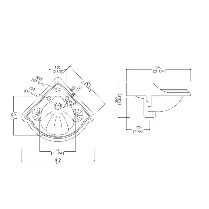 Devon&Devon Oxford Раковина угловая, с 2 отв. под смеситель, 61x54xh29 см, цвет белый IBLA2FOXF
