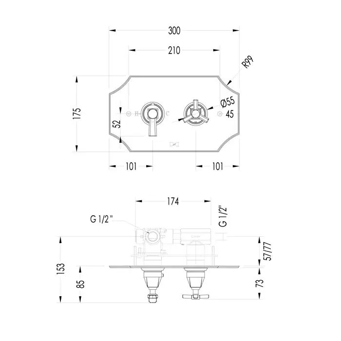 Devon&Devon Time Смеситель встраиваемый термостатический для душа, цвет: хром 2TIME248CR
