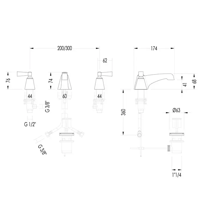 Devon&Devon Vip Time Смеситель для раковины на 3 отв., цвет хром 3VPTIME200CRNE