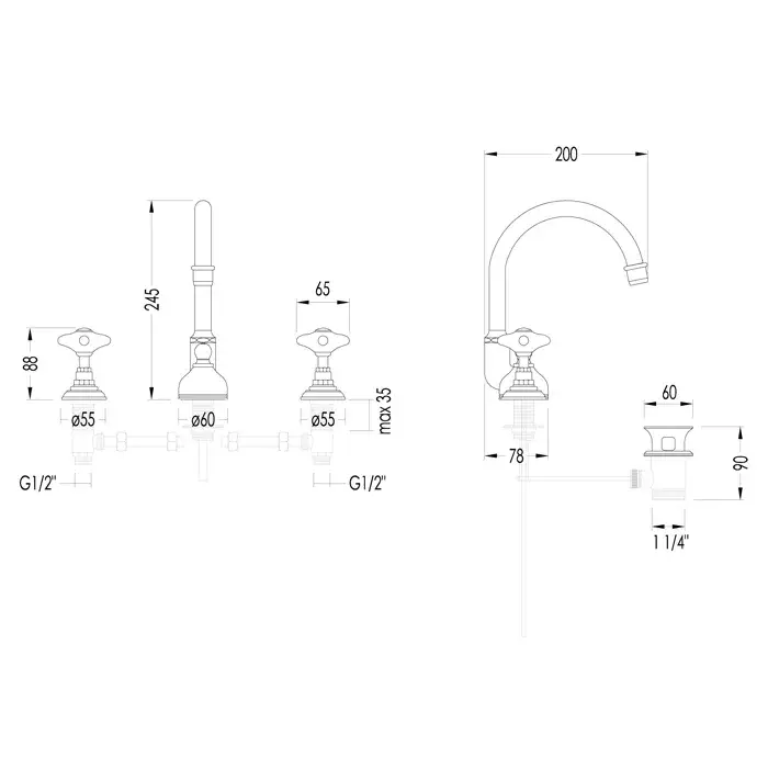 Devon&Devon White Rose Смеситель для раковины с высоким изливом на 3 отв., цвет: хром UTWR700ACR
