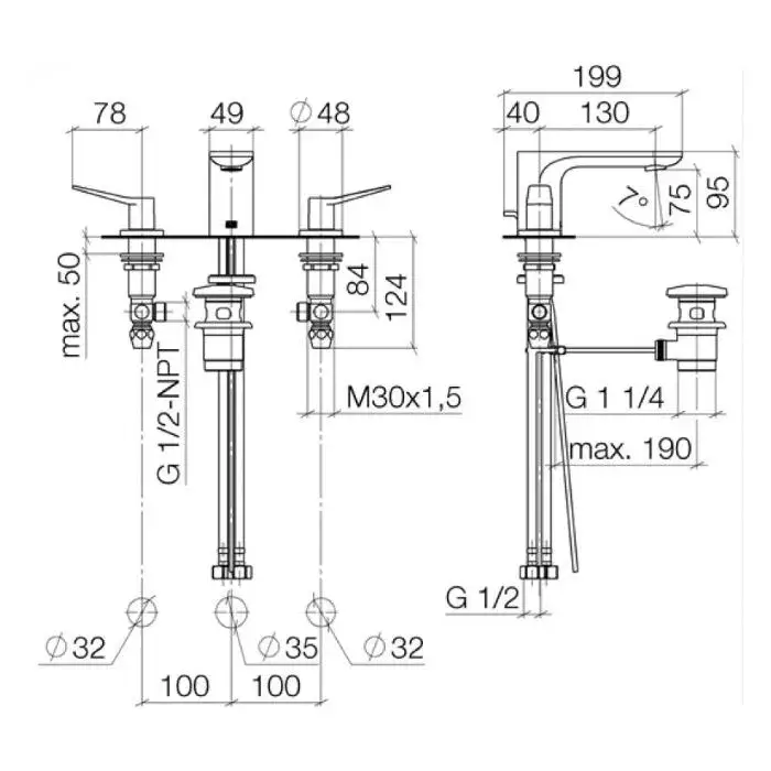 Dornbracht Lisse Смеситель для умывальника на три отверстия, цвет: хром 20713845-00