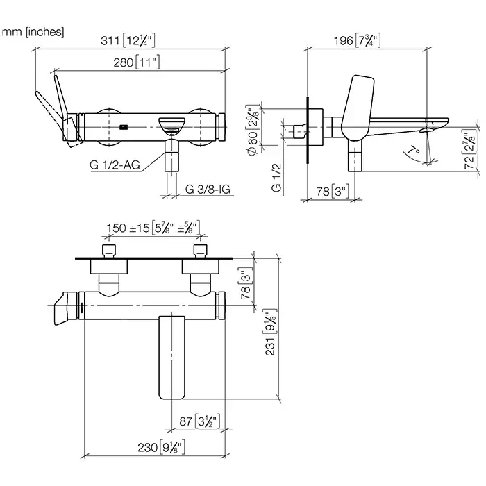Dornbracht Lisse Смеситель для ванны, настенный, цвет: платина матовая 33200845-06