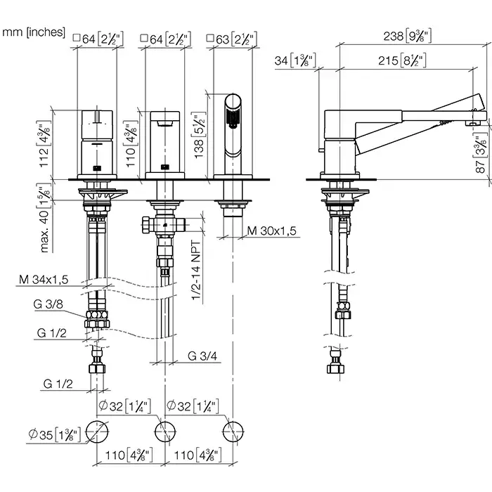 Dornbracht Lulu Смеситель для ванны, на 3 отв., на борт, цвет: платина матовая 27412710-06