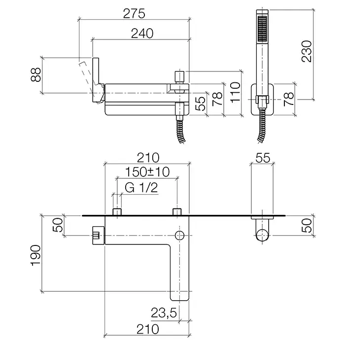 Dornbracht Lulu Смеситель для ванны, с ручным душем и держателем, цвет: платина матовая 33233710-06