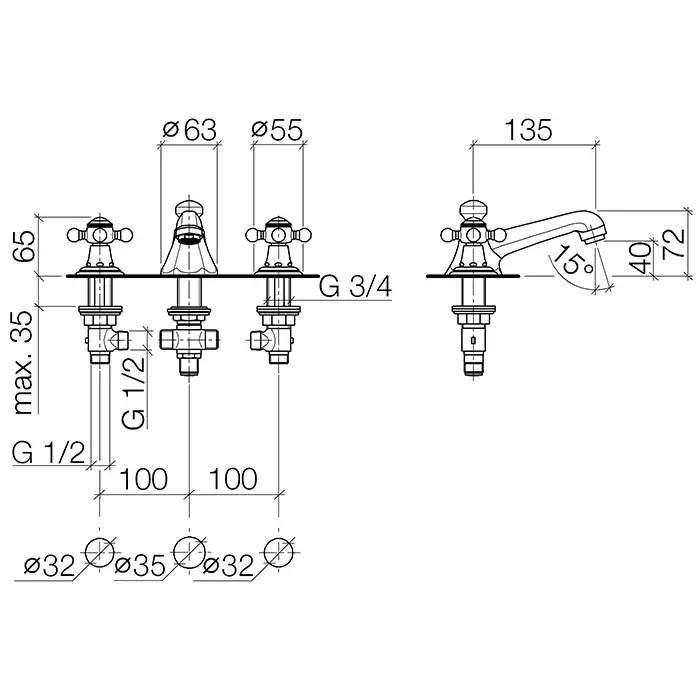 Dornbracht Madison Смеситель для раковины, на 3 отв., цвет: Dark Platinum matt 20700360-99