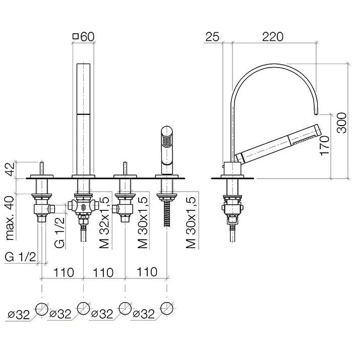 Dornbracht Mem Смеситель для ванны, на 4 отв., на борт, цвет: латунь сатинир. 27532782-28