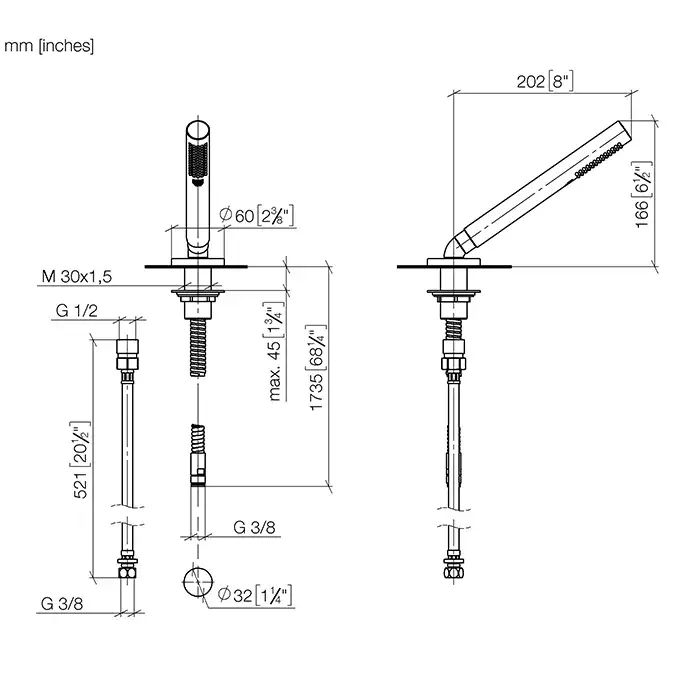 Dornbracht Meta Душевой гарнитур со шлангом, на борт ванны, на 1 отверстие, цвет: платина матовая 27702660-06