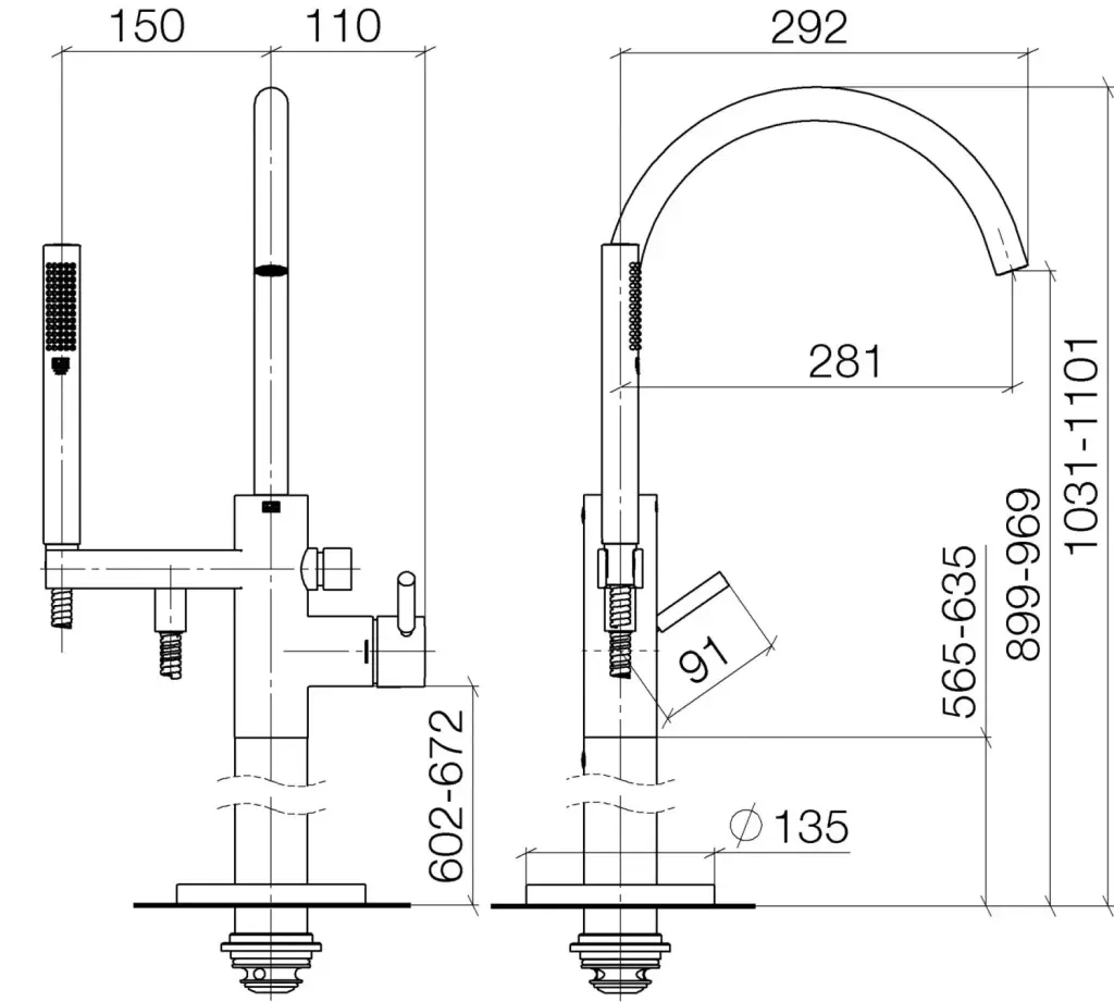 Dornbracht Meta Смеситель для ванны напольный однорычажный, цвет: чёрный матовый 25863661-33