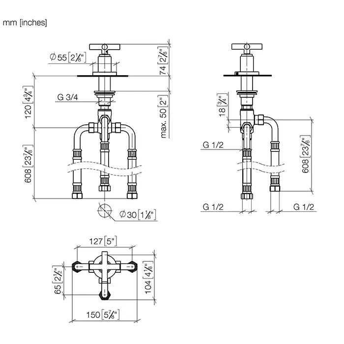 Dornbracht Tara Внешняя часть смесителя из стены на 3 отверстия, с вентилями, излив 16см, цвет: хром 36707892-00