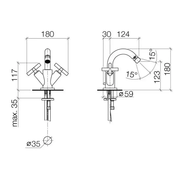 Dornbracht Tara Смеситель на 3 отв. для раковины, излив 16,5см, цвет: хром 20710882-00