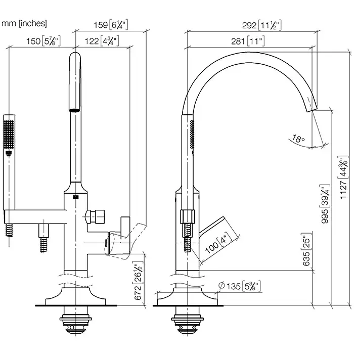 Dornbracht Vaia Смеситель для ванны, напольный, с ручным душем, цвет: хром 25863809-00