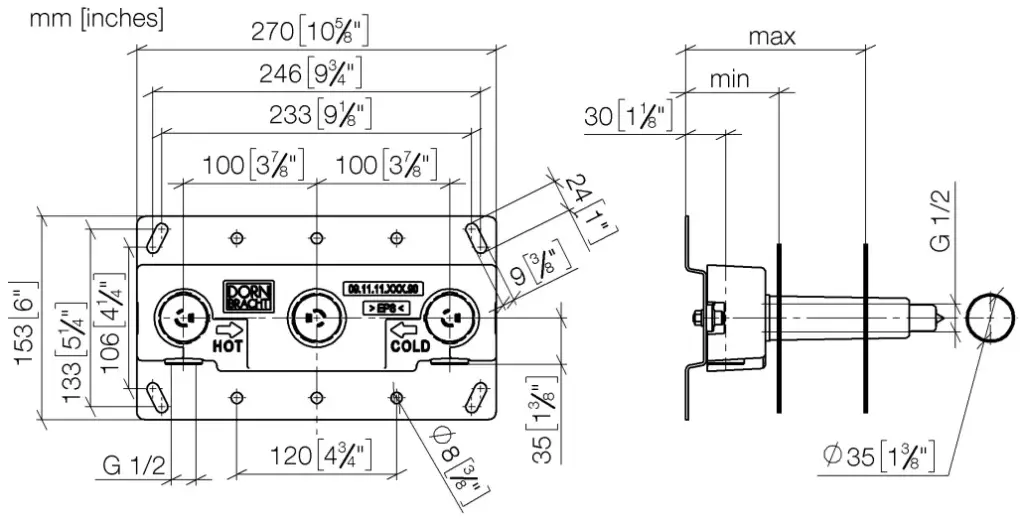 Dornbracht Встраиваемая часть смесителя на 3 отверстия, излив посередине 3570097090