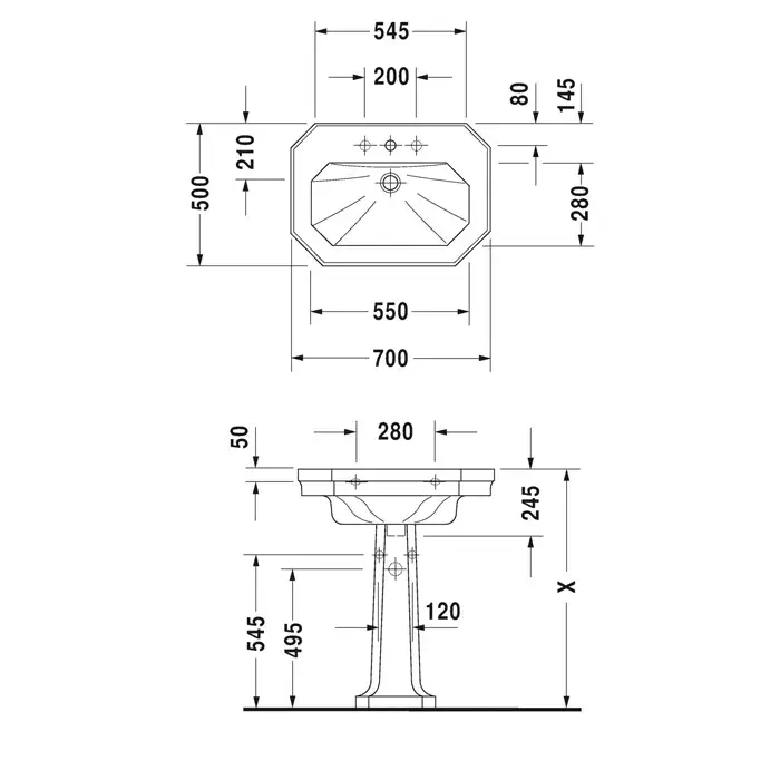 Duravit 1930 Раковина подвесная многоугольная на 1 отверстие 50х36,5x19,5h см, цвет: белый 785500000