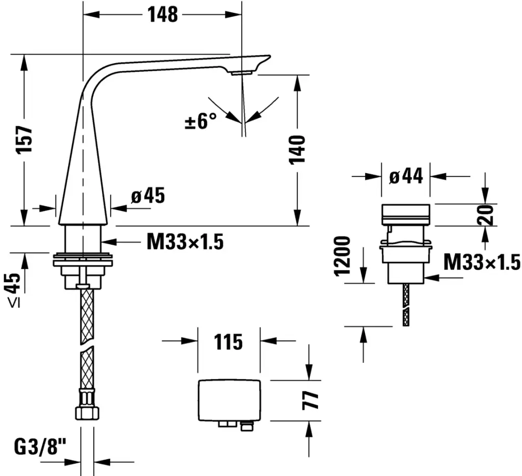 Duravit D.1 Смеситель электронный для раковины, на 2 отв., цвет: черный мат. D11110007046