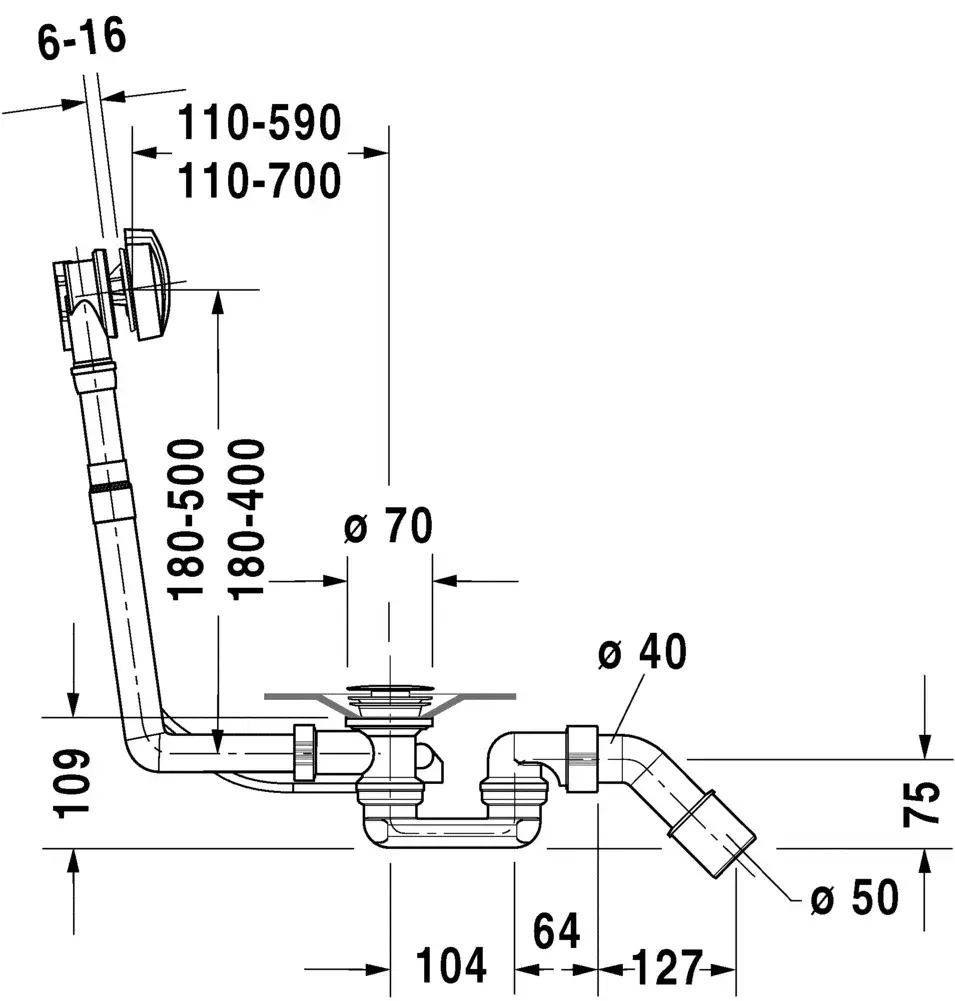 Duravit D-Code Комплект слива-перелива удлиненный для ванны, цвет: белый/хром 790226000001000