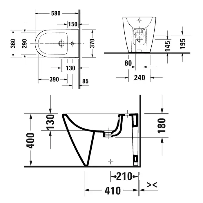 Duravit D-Neo Биде напольное 37x58хh40 cм, с переливом, цвет белый 22951000001