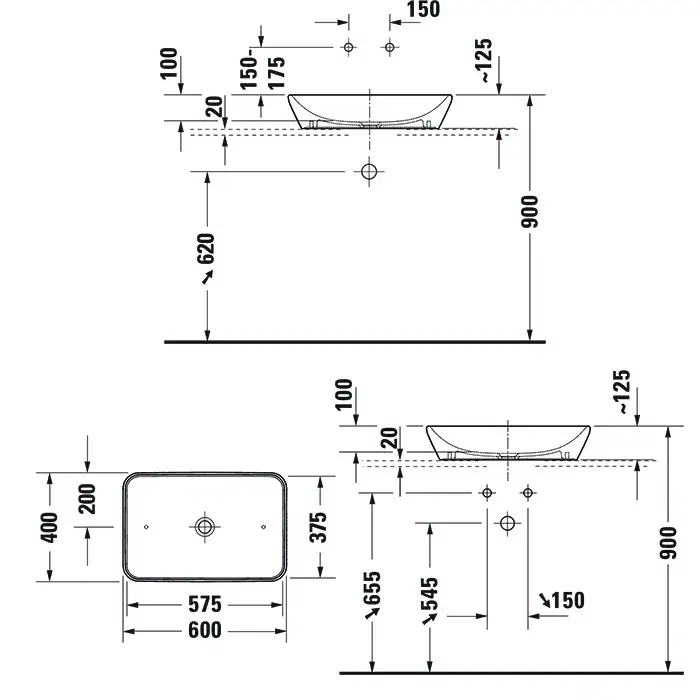 Duravit D-Neo Раковина накладная 60x40x12.5h см, без перелива, цвет: белый глянцевый 2397600070