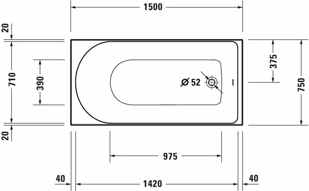Duravit D-Neo Ванна акриловая встраиваемая 150х75х48,5h см, цвет: белый 700471000000000