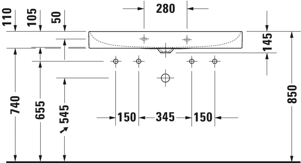 Duravit DuraSquare Раковина подвесная прямоугольная с 2 отв 120x47x14,5h см, цвет: белый 2353120014
