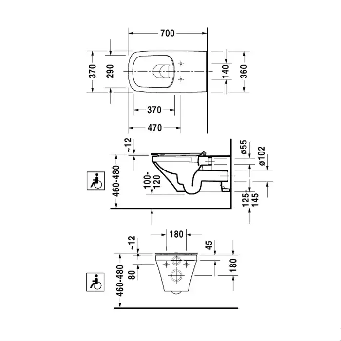 Duravit DuraStyle Унитаз Rimless подвесной без смывного края, для инвалидов на колясках 2559090000