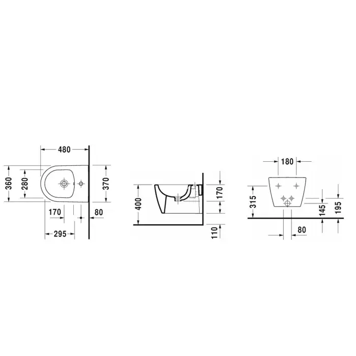 Duravit Me by Starck Биде подвесное 37x48 см с 1 отверстием под смеситель и креплением, цвет: белый 2290150000