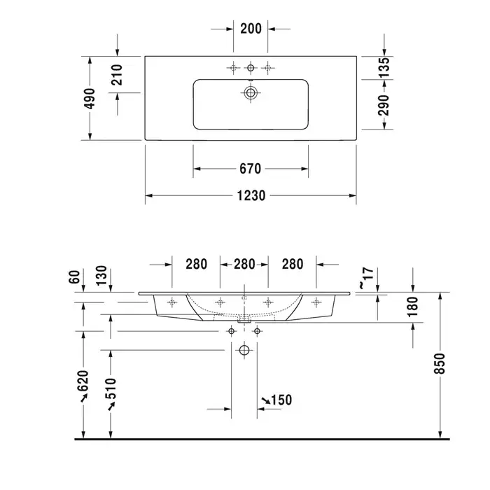 Duravit Me by Starck Раковина для мебели с перел., 123x49 см, цвет: белый 2336120060