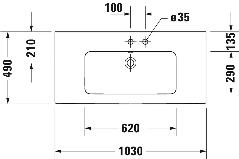 Duravit Me by Starck Раковина подвесная прямоугольная без отв 103x49x17,5h см, цвет: белый 233610006 2336100060